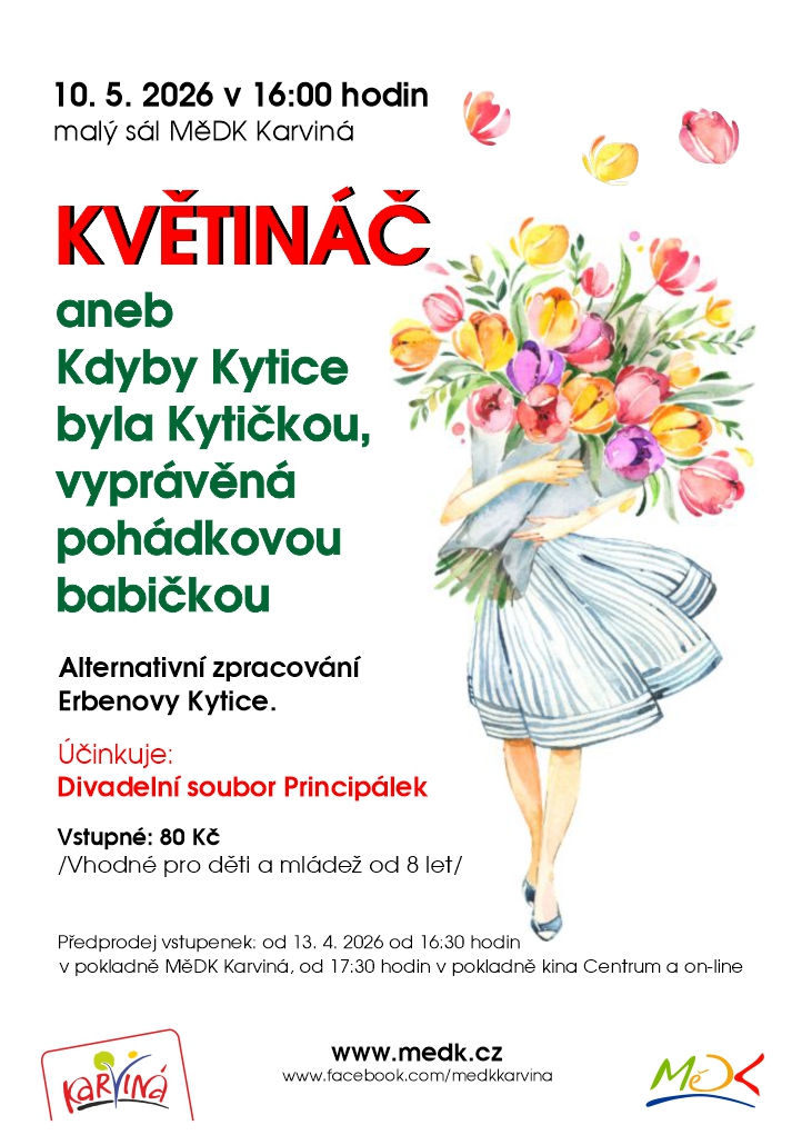 | Předprodej: | od 13. 4. 2026, od 16:30 hodin v pokladně MěDK Karviná, od 17:30 hodin v pokladně kina Centrum a on-line |